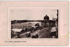 This postcard from Rita shows a view of the Brisbane River looking South-East from the top of Queen Street towards the Kangaroo Point cliffs, with the Customs House in the foreground.
